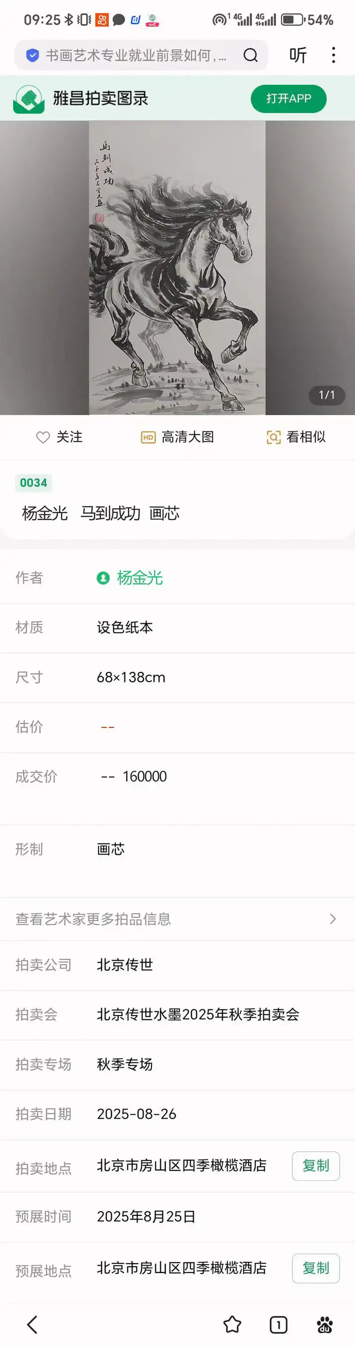 作品《马到成功》以16万元落槌成交