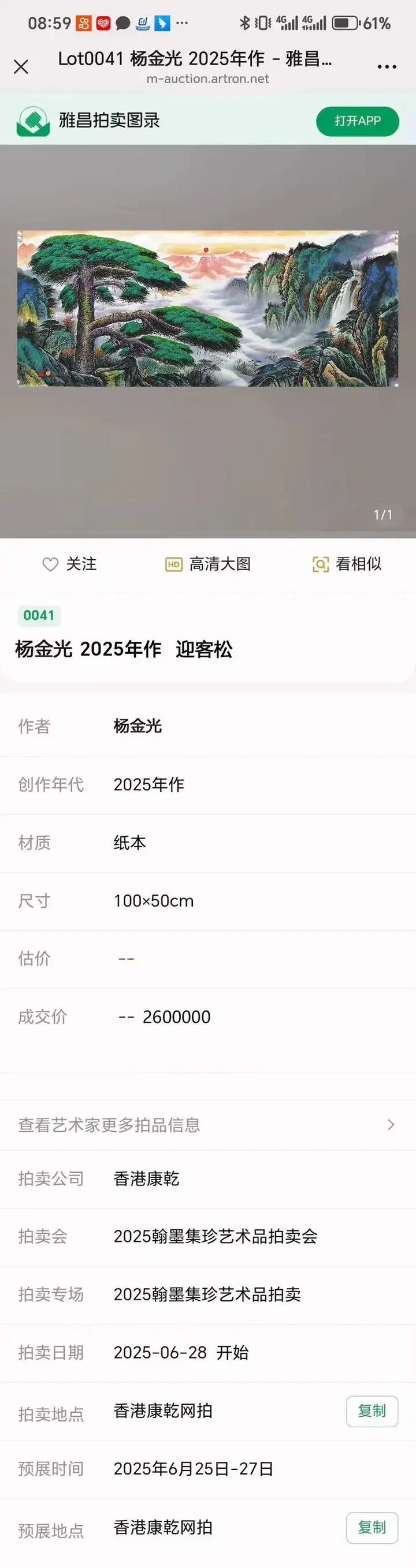 作品《迎客松》以260万落槌成交
