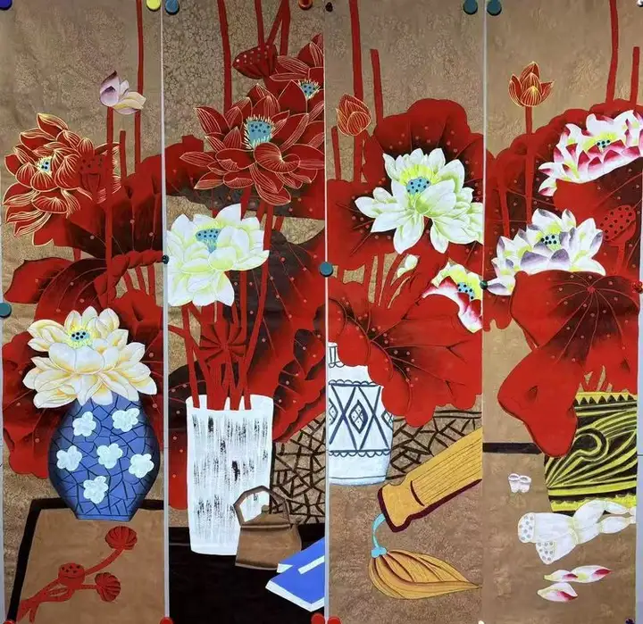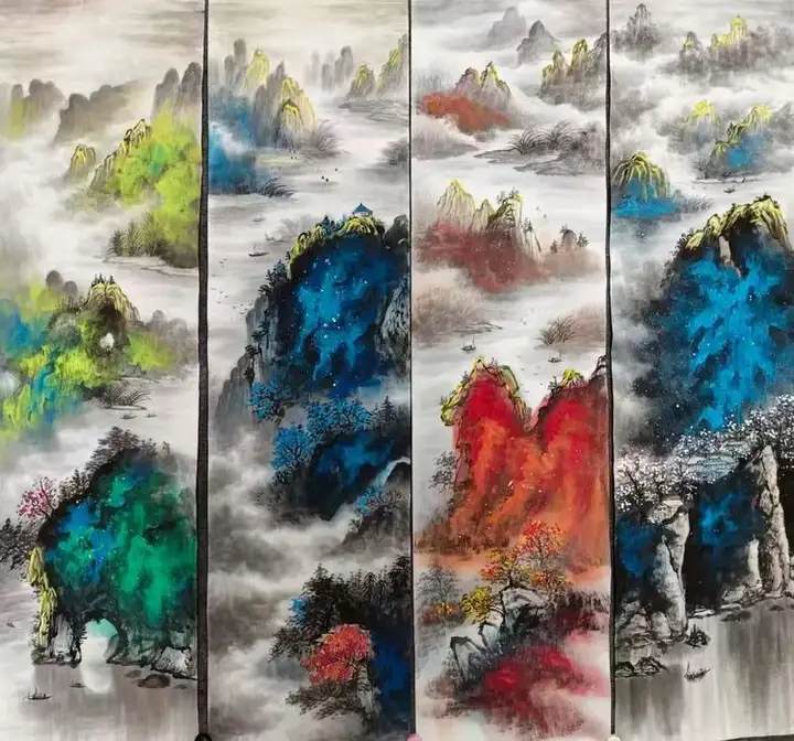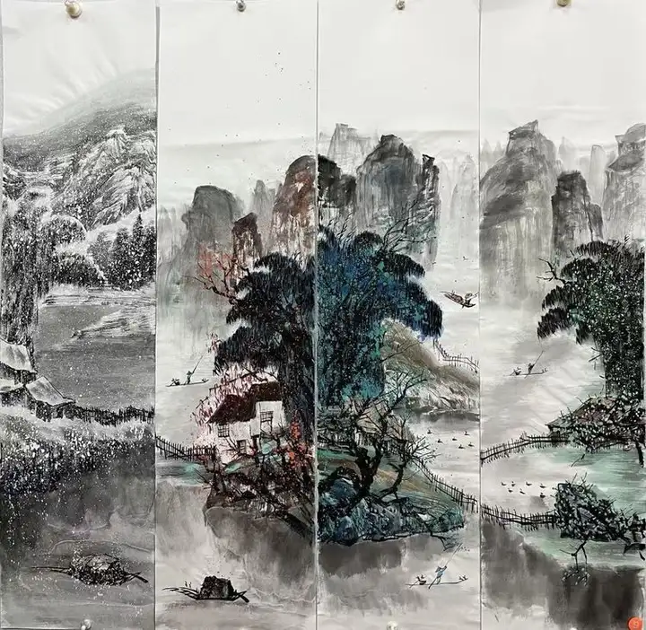 作品《泼彩四条屏》以88万落槌成交