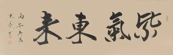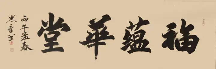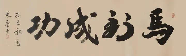 从创作背景看,丙午年的书写,恰是作者对生活与事业的美好期许。“鸿运”二字不仅是吉祥的祝福,更暗含铁道兵出身的作者对人生征途的自信——如鸿雁般志存高远,如运势般顺势而为。笔墨间的飞白与枯笔,是岁月的沉淀,也是力量的迸发,让“鸿运”二字既有视觉冲击力,又有深厚的文化底蕴,堪称当代行草小品中的佳作。
