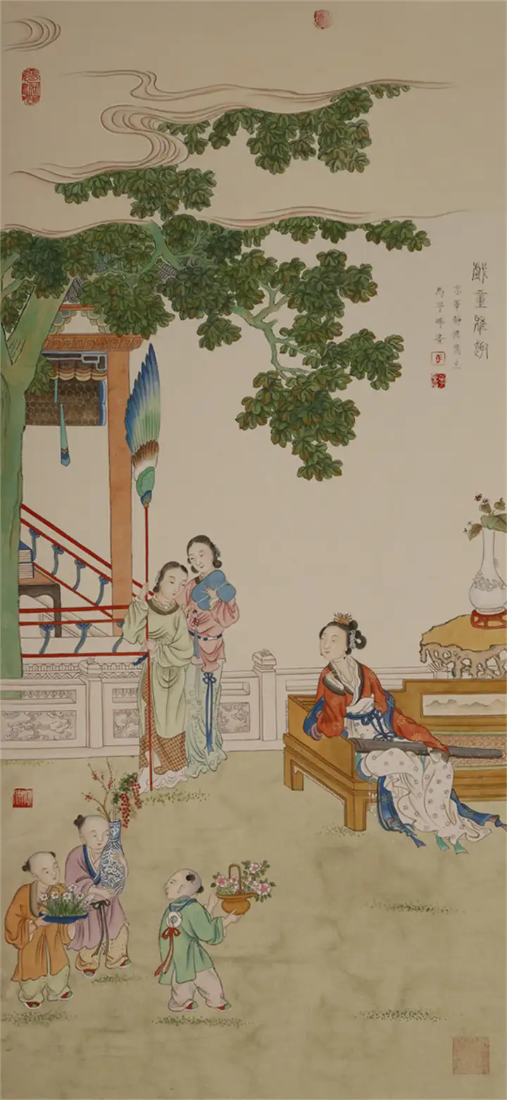 马宁晞是南宋马远后裔,受家族影响,天赋极佳,临古功深,能创作出不同风格、题材广泛的绘画作品。传统绘画作品传承了祖上马远的技法,尤其善于画松,树干浓重,多横斜之态,楼阁界画精工,人物大都以此为景。后又有唐寅、仇英、陈老莲、任伯年、张大千、陈少梅的笔法笔意。博众采长,集古人精华于一身,善画工笔人物,姿态优美,造型准确,色彩艳丽清雅。马宁晞是国礼艺术家,是青年女画家的代表,在很多国家深受喜爱,作品被多国大使馆及政府收藏。