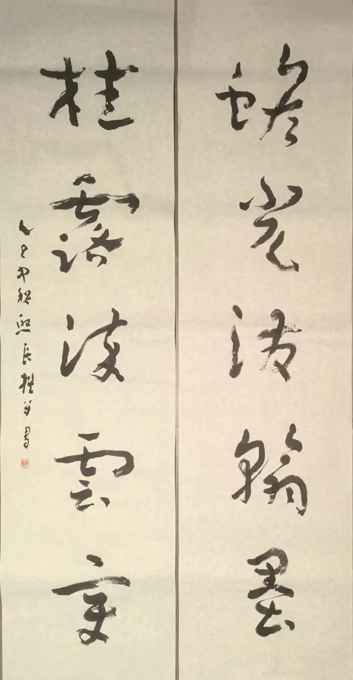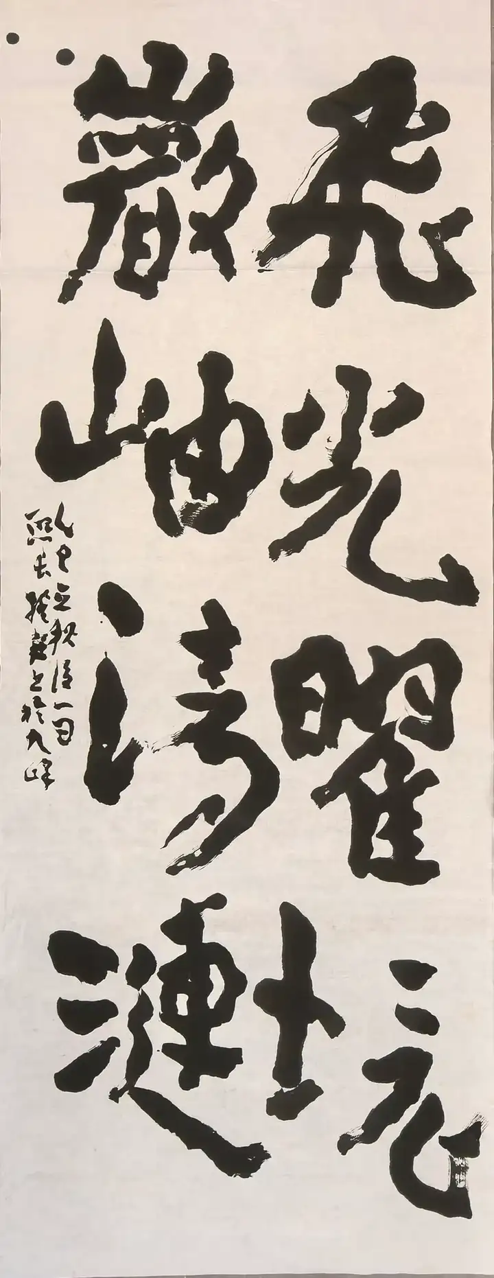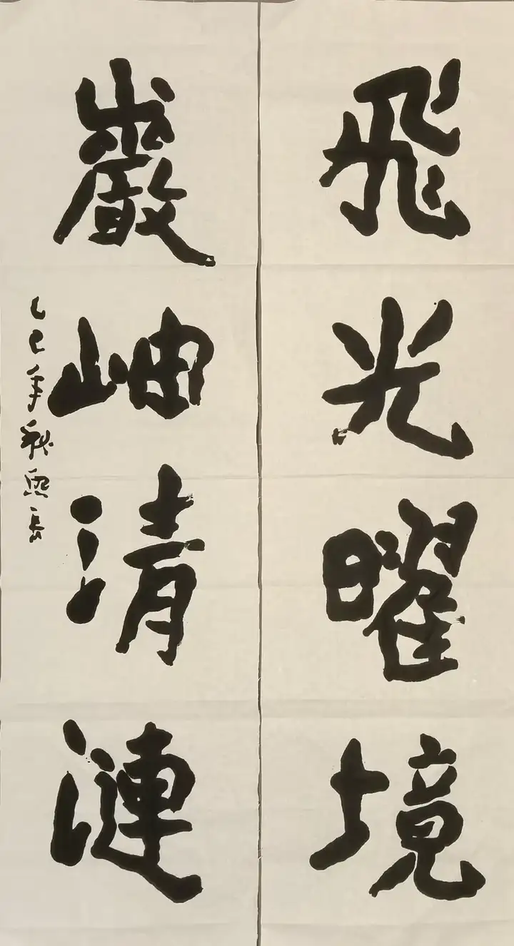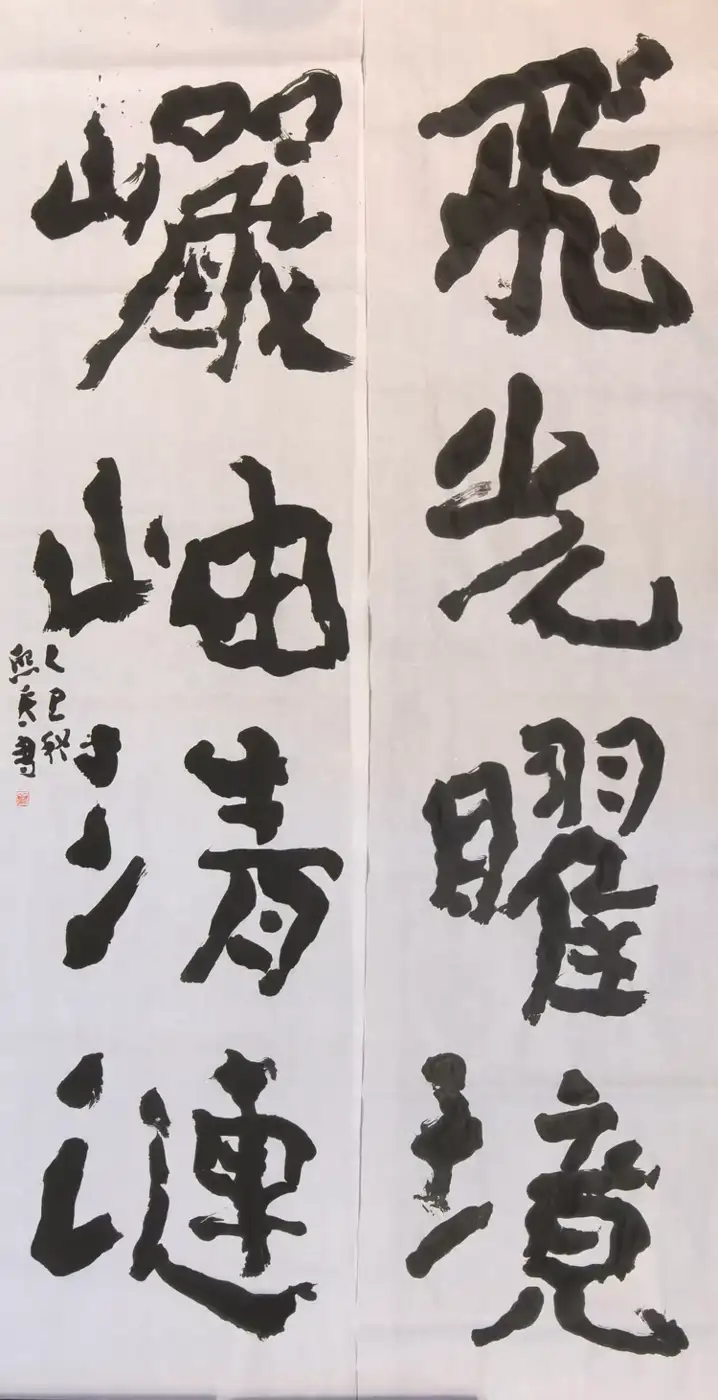 (金熙长榜书自撰联:飞光曜(耀)境,岩岫清涟)