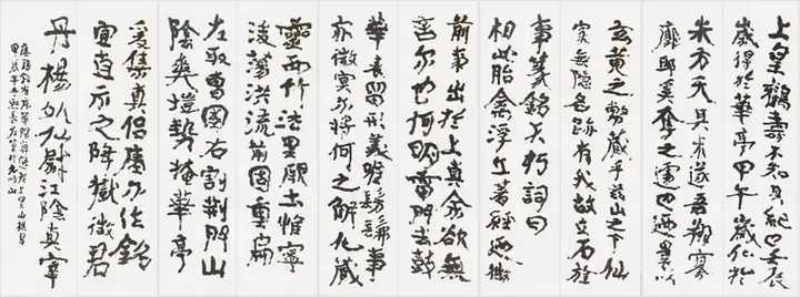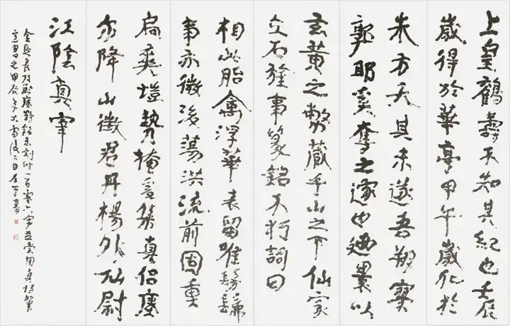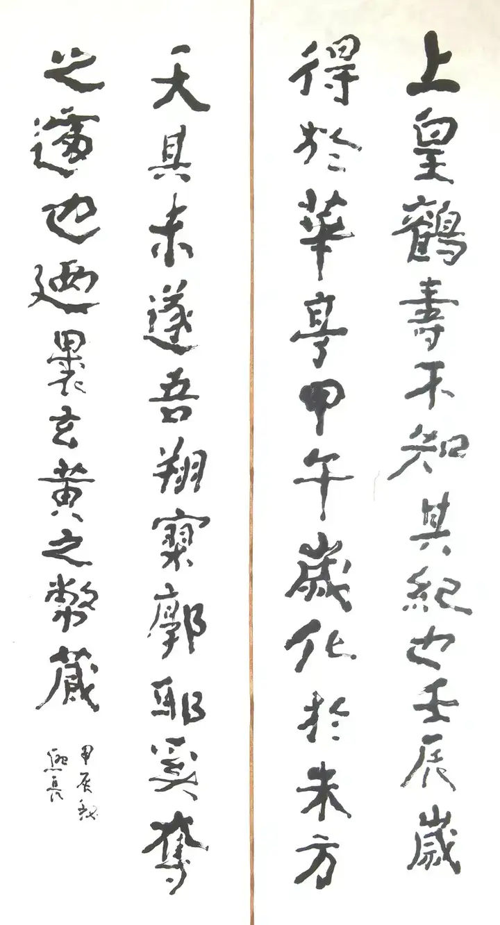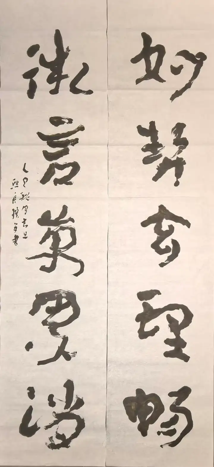 笔墨当随时代,亦当守望永恒。《瘗鹤铭》在江水中浸泡千年,非但未失其神,反而愈发显出本真光芒;先生以左笔写拙,褪去习气,终得书法真精神。这或许正是艺术的真谛:唯有摒弃巧饰,甘于朴拙,方能抵达精神的彼岸。当我们在喧嚣中感到迷失时,不妨静心观照这些笔墨——它们在纸素间静静矗立,如焦山残石,如星河流转,诉说着“宁拙毋巧”的古老智慧,在用其独特的艺术疗愈人心时,也照亮着回归本真的艺术之路。